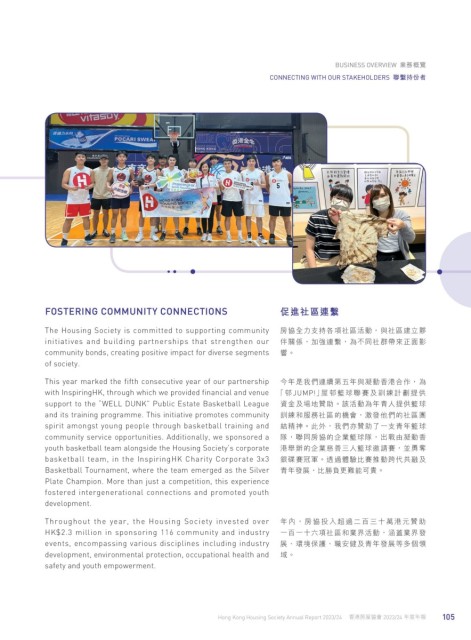 community service opportunities. Additionally, we sponsored a 隊,聯同房協的企業籃球隊,出戰由凝動香