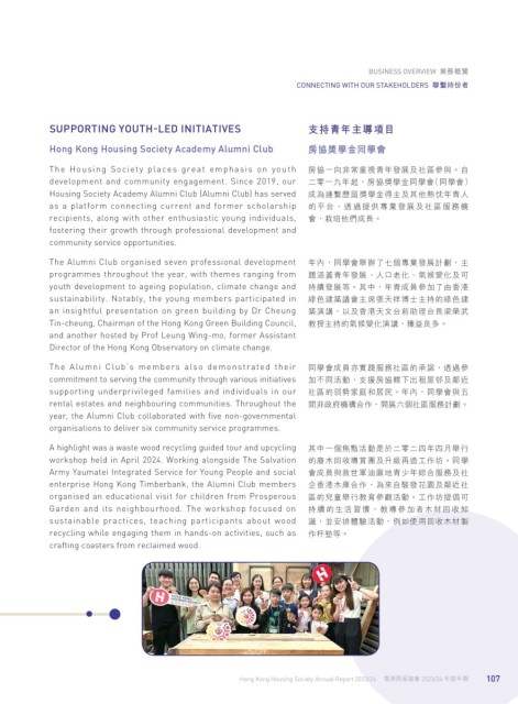 The Housing Society places great emphasis on youth 房協一向非常重視青年發展及社區參與。自