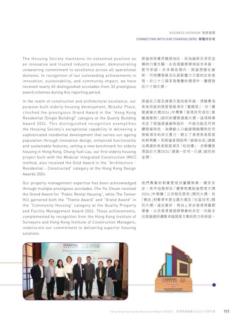 through multiple prestigious accolades. Cho Yiu Chuen received 定。其中祖堯邨在「優質物業設施管理大獎
