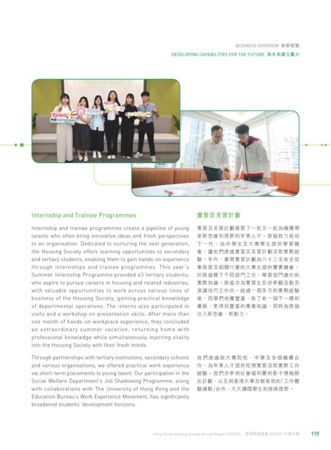Summer Internship Programme provided 63 tertiary students, 於房協轄下不同部門工作,學習部門運作的