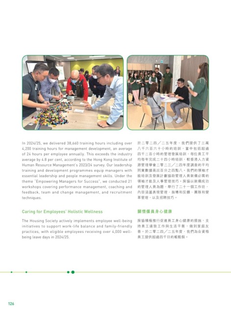 being leave days in 2024/25. 員工提供超過四千日的輕鬆假。