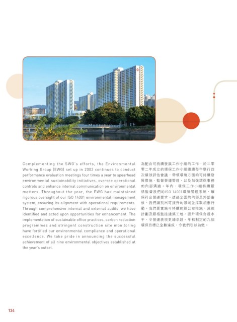 matters. Throughout the year, the EWG has maintained 格監督我們的ISO 14001環境管理系統,確