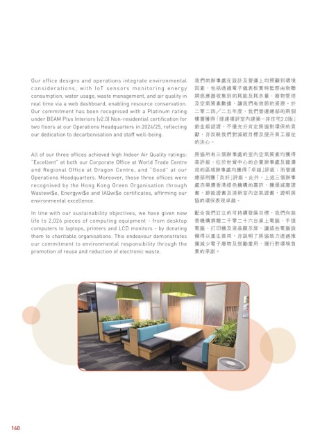 our dedication to decarbonisation and staff well-being. 獻,亦反映我們對減碳目標及提升員工福祉