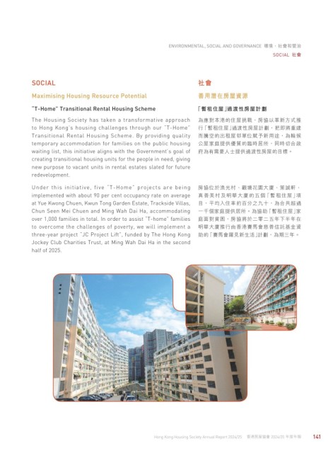 to Hong Kong’s housing challenges through our “T-Home” 行「暫租住屋」過渡性房屋計劃,把即將重建