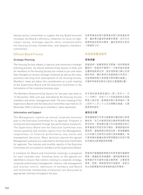 A schedule for Board and Committee meetings is prepared 房協每年會編製監事會和各委員會的會議時