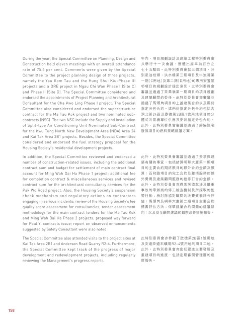 During the year, the Special Committee on Planning, Design and 年內,項目規劃設計及建築工程特別委員會