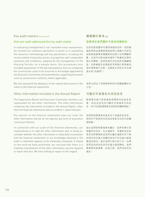 responsible for the other information. The other information 責。其他信息包括刊載於年度報告內的信