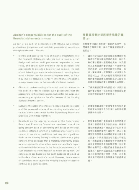 to the date of our auditor’s report. However, future events 項或情況可能導致房屋協會不能持續經