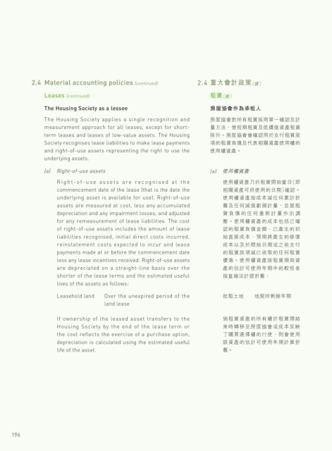The Housing Society applies a single recognition and 房屋協會對所有租賃採用單一確認及計