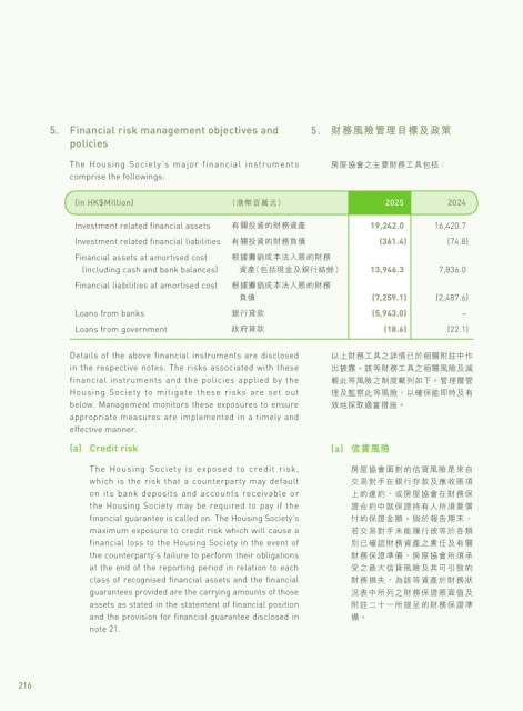 The Housing Society’s major financial instruments 房屋協會之主要財務工具包括: