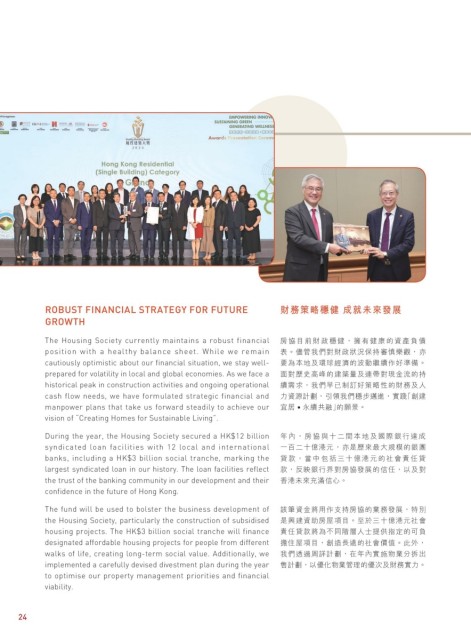 The Housing Society currently maintains a robust financial 房協目前財政穩健,擁有健康的資產負債