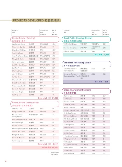 Total 總數 40,242 June Garden 頌賢花園 1988 480