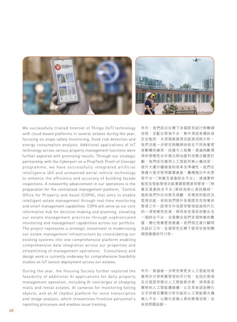 inspections. A noteworthy advancement in our operations is the 監控及智能管理功能實踐智慧屋邨管理。「物