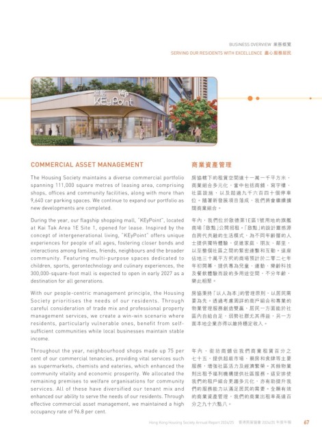 The Housing Society maintains a diverse commercial portfolio 房協轄下的租賃空間達十一萬一千平方米,