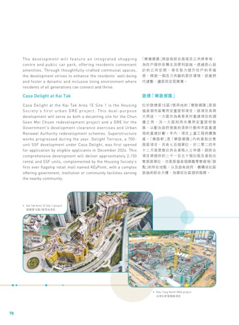 works progressed during the year. Delight Terrace, a 700- 進。「樂啟軒」是「樂啟都匯」內的資助出售