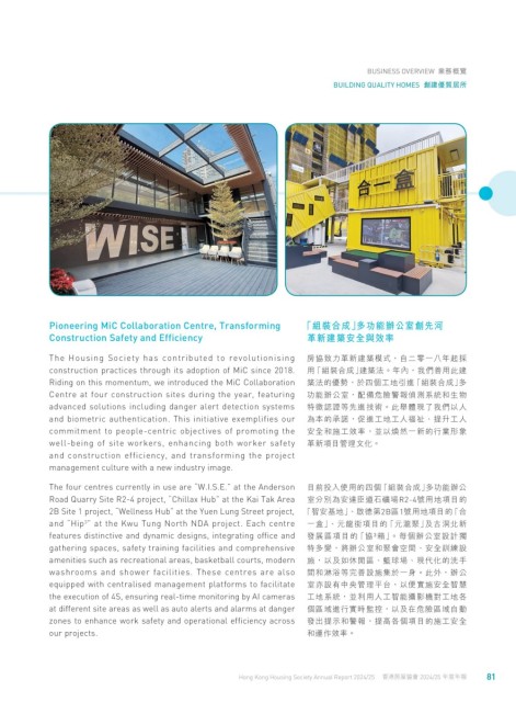 construction practices through its adoption of MiC since 2018. 用「組裝合成」建築法。年內,我們善用此建