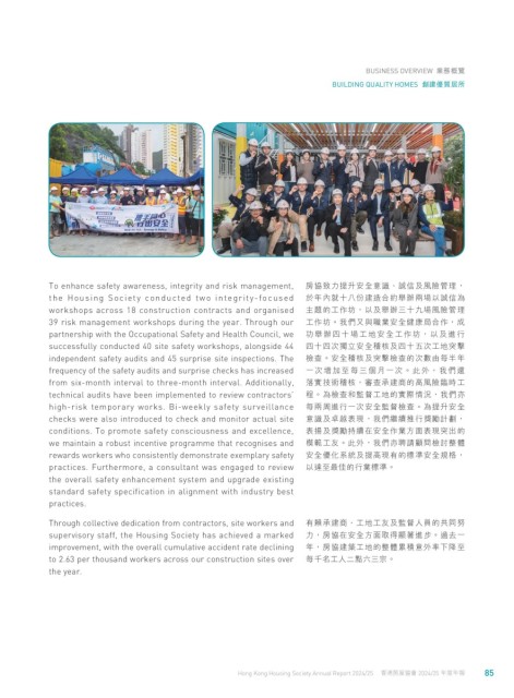 To enhance safety awareness, integrity and risk management, 房協致力提升安全意識、誠信及風險管理,