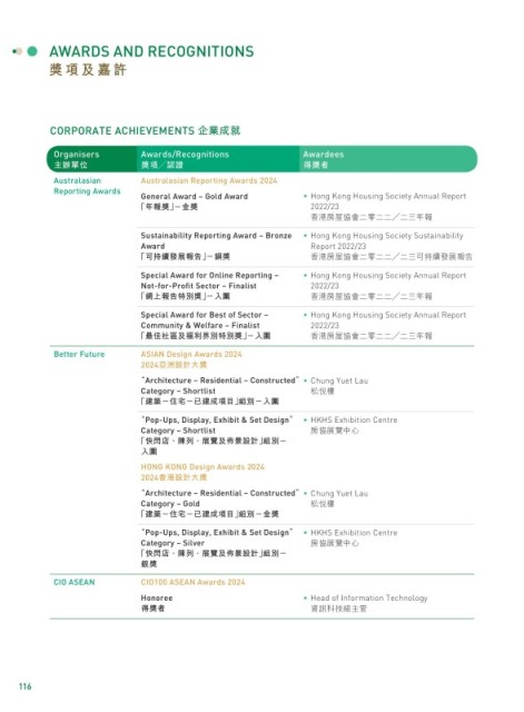Special Award for Best of Sector – • Hong Kong Housing Society Annual Report