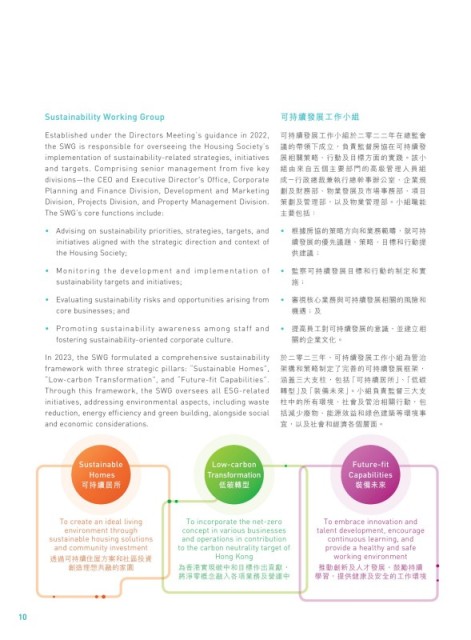 the SWG is responsible for overseeing the Housing Society’s 議的帶領下成立,負責監督房協在可持續發