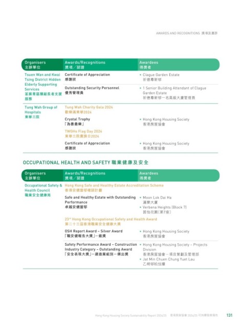 130 Hong Kong Housing Society Sustainability Report 2024/25 香港房屋協會 2024/25 可持續發展報告 131