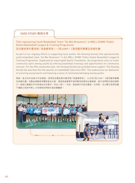 房協一直支持本地青少年的發展。我們冠名贊助青年籃球隊「家維夢想家」,以支持《邨JUMP ! 》屋邨籃球聯賽