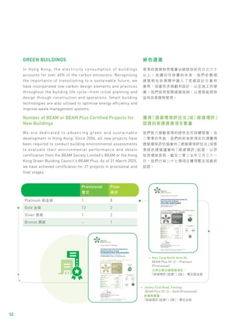 Kong Green Building Council’s BEAM Plus. As of 31 March 2025, 日,我們已有二十七個項目獲得暫定或最終