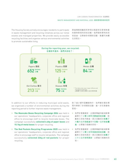 62 Hong Kong Housing Society Sustainability Report 2024/25 香港房屋協會 2024/25 可持續發展報告 63