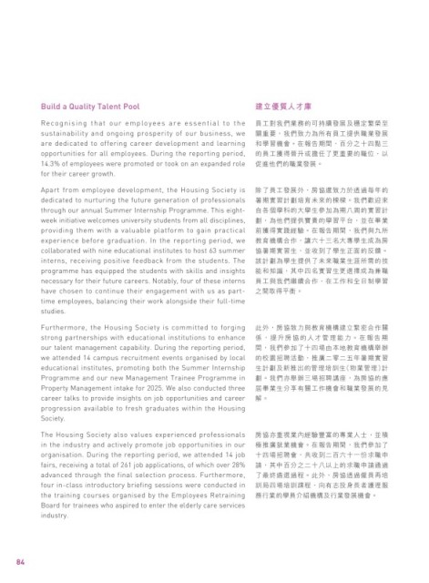 strong partnerships with educational institutions to enhance 係,提升房協的人才管理能力。在報告期