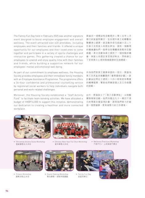 Moreover, the Housing Society established a “Staff Activity 此外,房協設立了「員工活動津貼」,以鼓勵